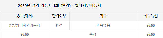 합격 정보를 큐넷에서 지금 확인해 보니 아래 점수로 합격했네요.